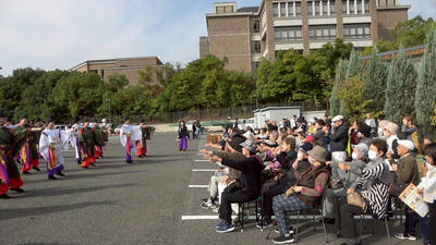 まず朝9時過ぎから、いずみ緑ヶ丘自治会の50周年記念式典で、「12Twel舞 THE SEIMEI」と「ヘイヘイブギ」の2曲を踊らせていただきました。地域のおめでたい場に参加させていただけた上に、チームの諸先輩方がたくさん応援に来てくださり、朝から笑顔が広がりました。
