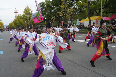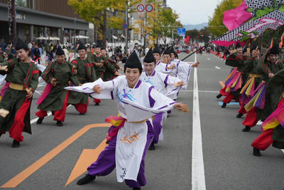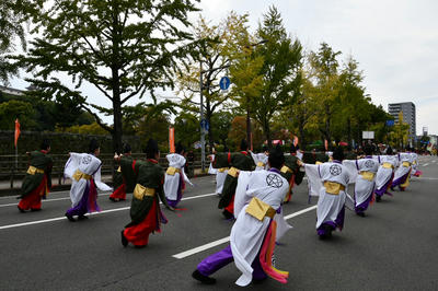 今回は特にけやき大通りでの初パレード演舞が楽しみでした。けやき大通りはとても広くゆったりして、沿道のカフェやレストランからも見ていただけるという素敵なロケーションでした。