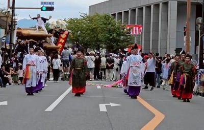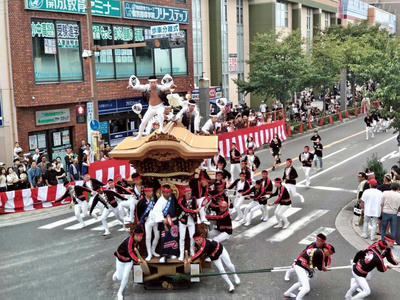 パレードが終わると、その道に8つのだんじりが登場。交差点でのやり回しを多くの人が歓声とともに見ていました。