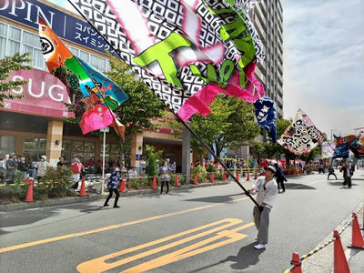 ザ・まつりは、泉佐野駅前の道をよさこいチームが踊り、だんじりが疾走する、どちらも楽しめるイベントです。