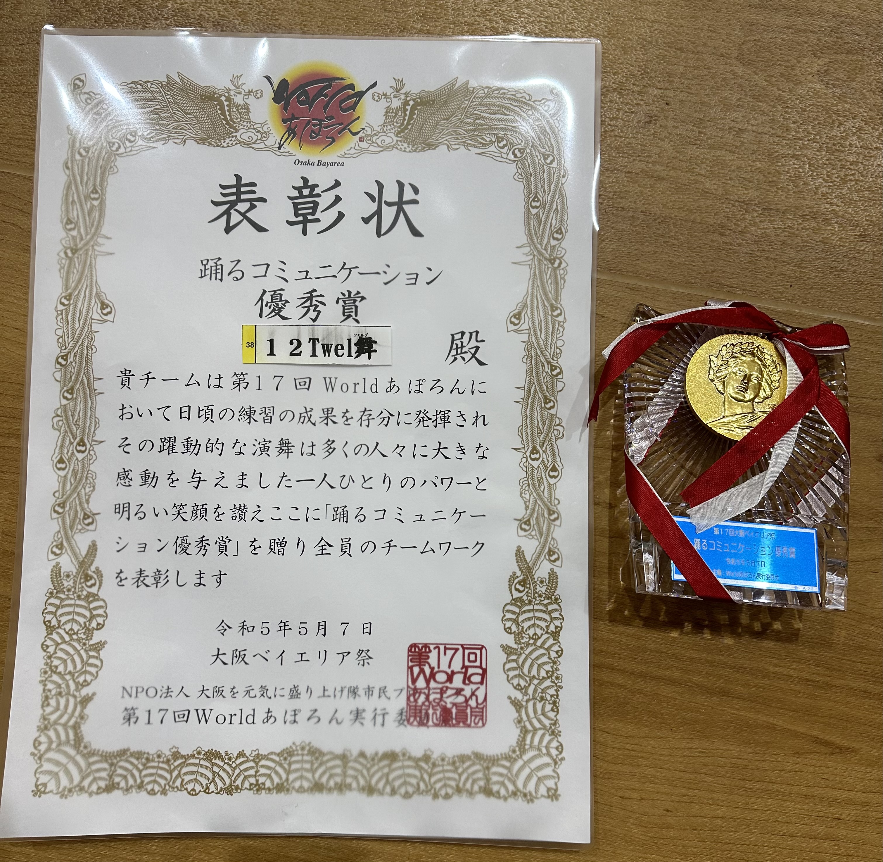 ◆2023年5月7日 (日) Worldあぽろんで「踊るコミュニケーション優秀賞」を受賞しました!
