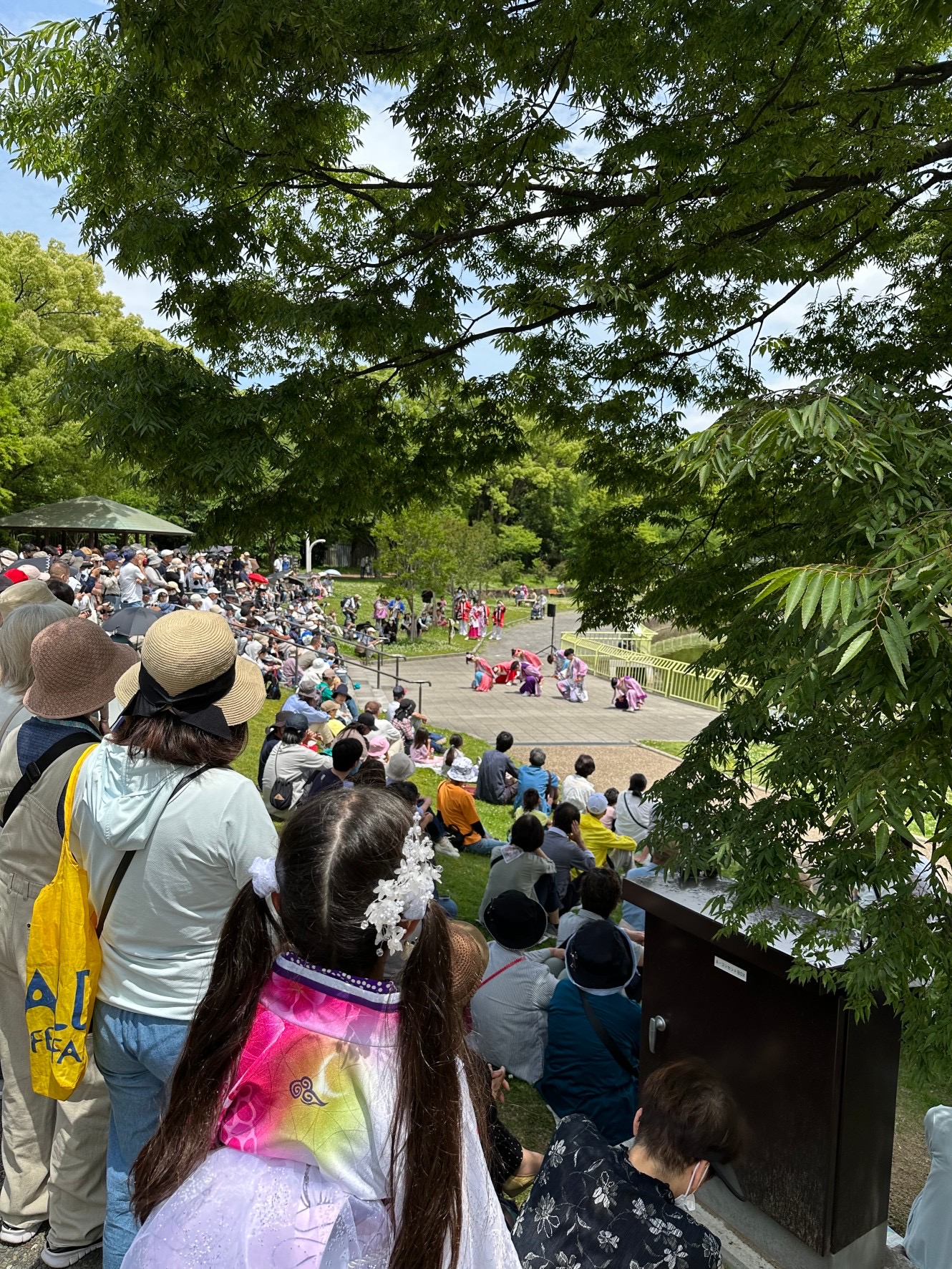 舞台前は常にお客様でいっぱいで、私たちの演舞にも大きな拍手をいただきました。また、会場を歩いていると「これはよさこいの衣装なんですか?初めて見ます。それぞれに個性があるんですね。びっくりしました」と、植物園に来られた方々に声をかけられました。衣装を見るだけでも楽しいのがよさこい。そして踊ればもっと楽しい!