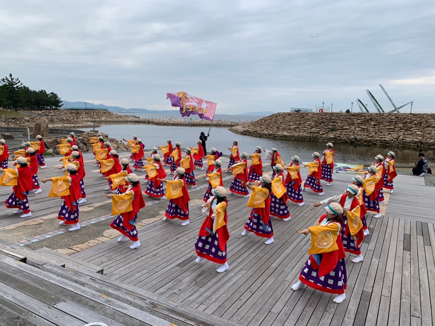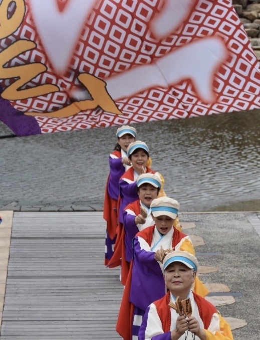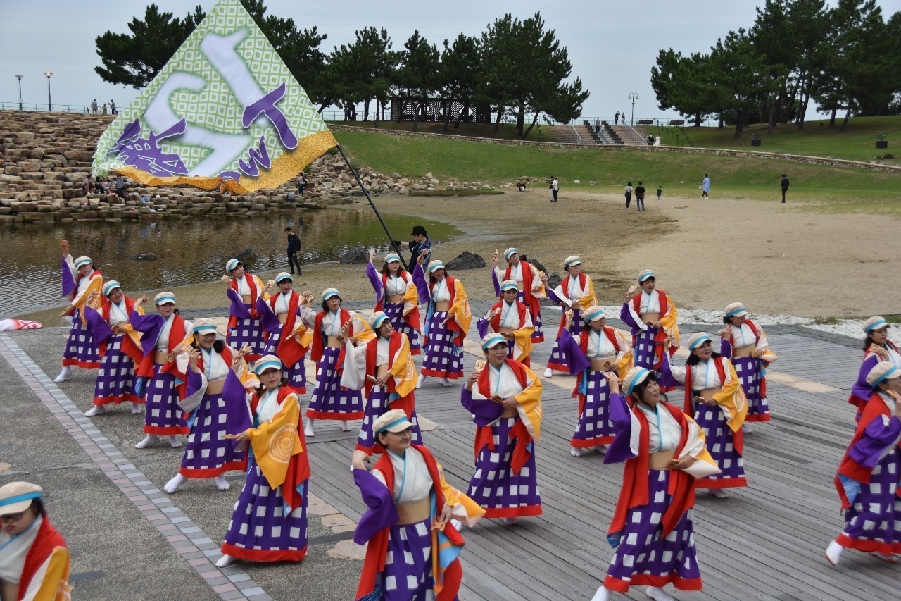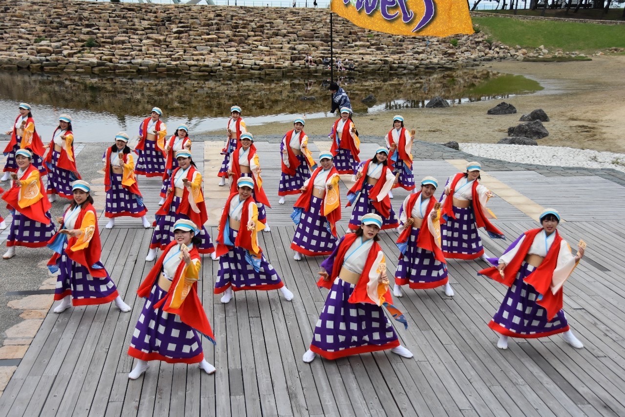 よさこい祭りの総踊り曲「この地へ」と「正調よさこい」を、いつも「泉州YOSAKOIゑぇじゃないか祭り」が行われる石舞台で踊っていますので、ご覧ください。