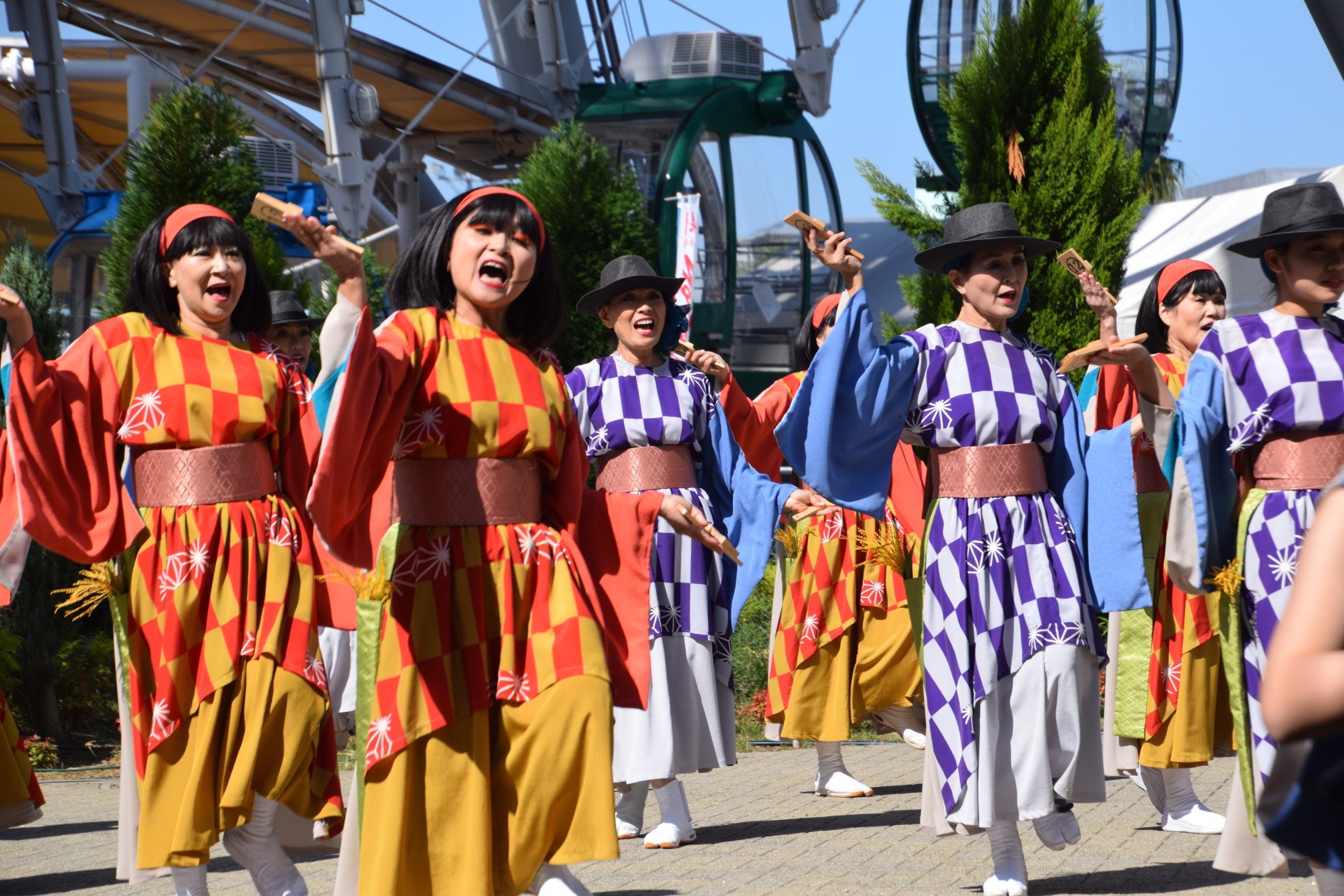 今年は「緑町公園」という広い公園が会場で、メインステージの他にバラ園の前のステージ、長短合わせて3本のパレード。計5ヵ所で「神の宝の玉手箱」を踊らせていただきました。