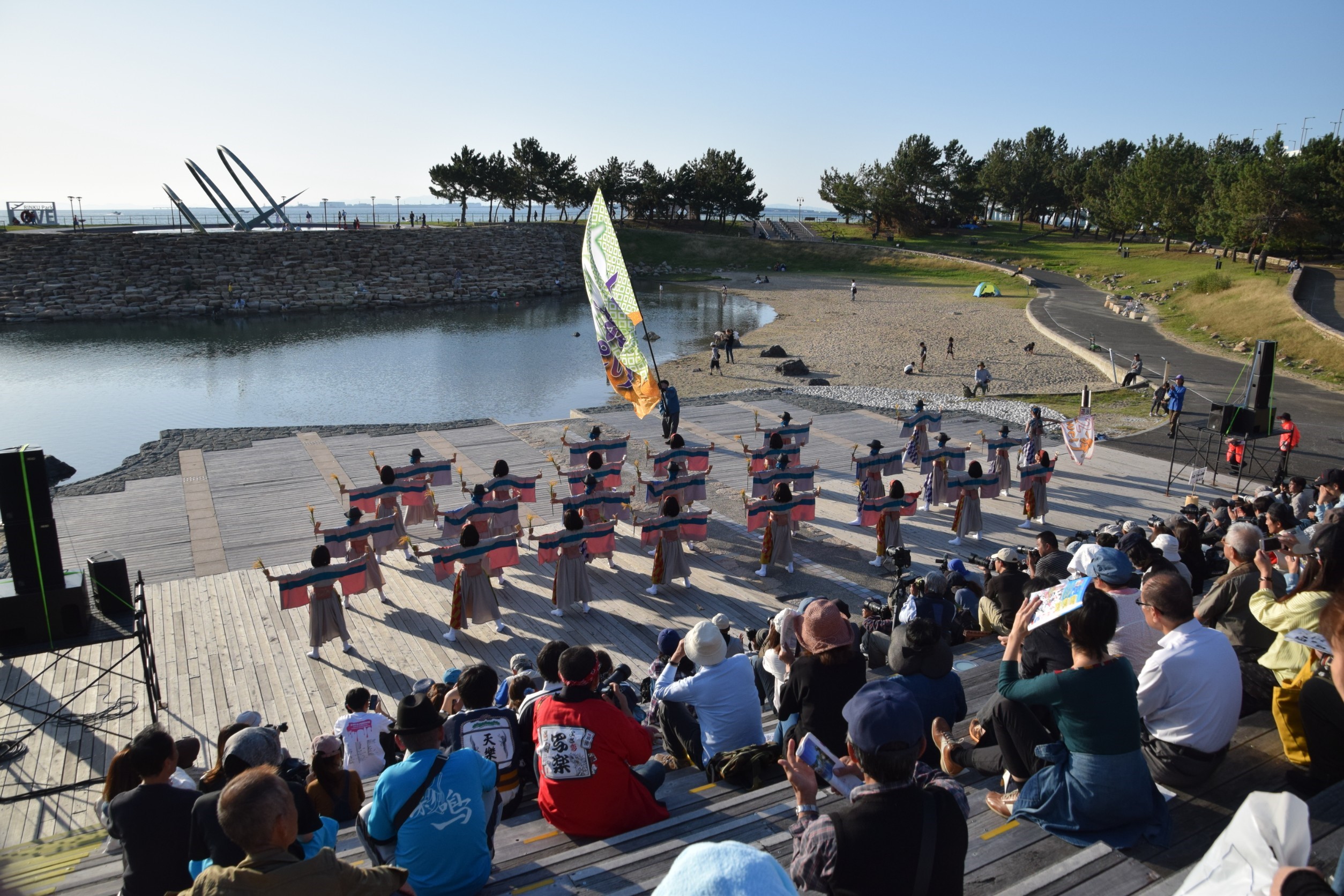 風がそよ吹く心地よい気候、緑が多く水の流れも配した公園、気さくなスタッフ、暖かい拍手や声援を送ってくださる観客の方々・・・とても居心地よく、踊る楽しさを感じて過ごした一日でした。