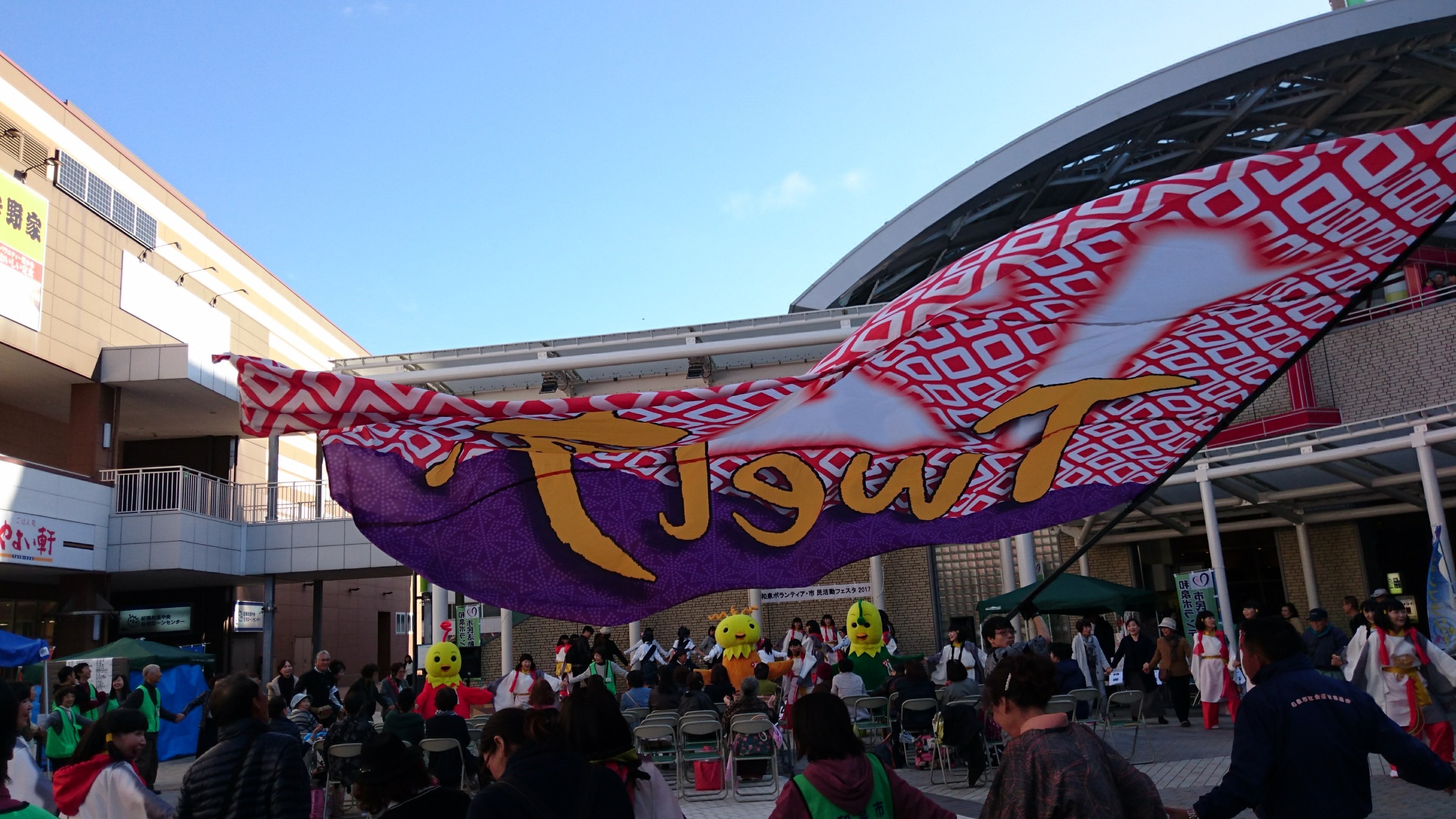 少し肌寒さを感じ始めた秋晴れの午後。和泉中央イズミヤ・アムゼ広場では、多様なボランティア活動の催しでとてもにぎわっていました。