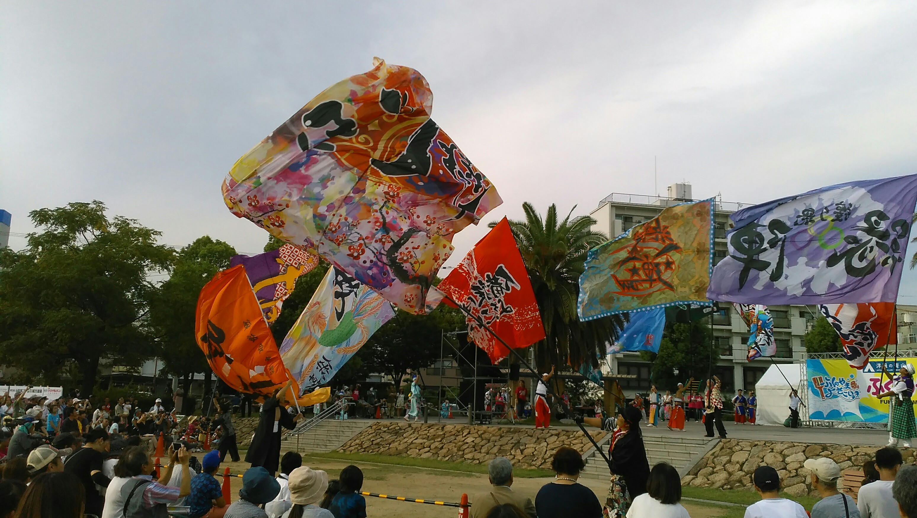 演舞の最後には「大旗の共演」がありました。各チームの旗が勇壮にたなびく中、12Twel舞の旗がひときわ輝いて見えました。