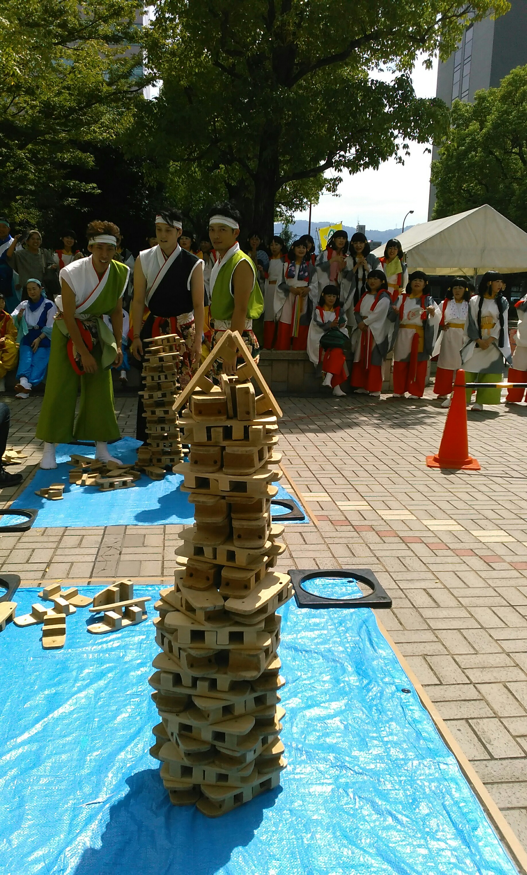 福山市名産の下駄を積み上げる「ゲタリンピック」というお楽しみのチーム対向競技もあり、そこでは10代のメンバーが大活躍!