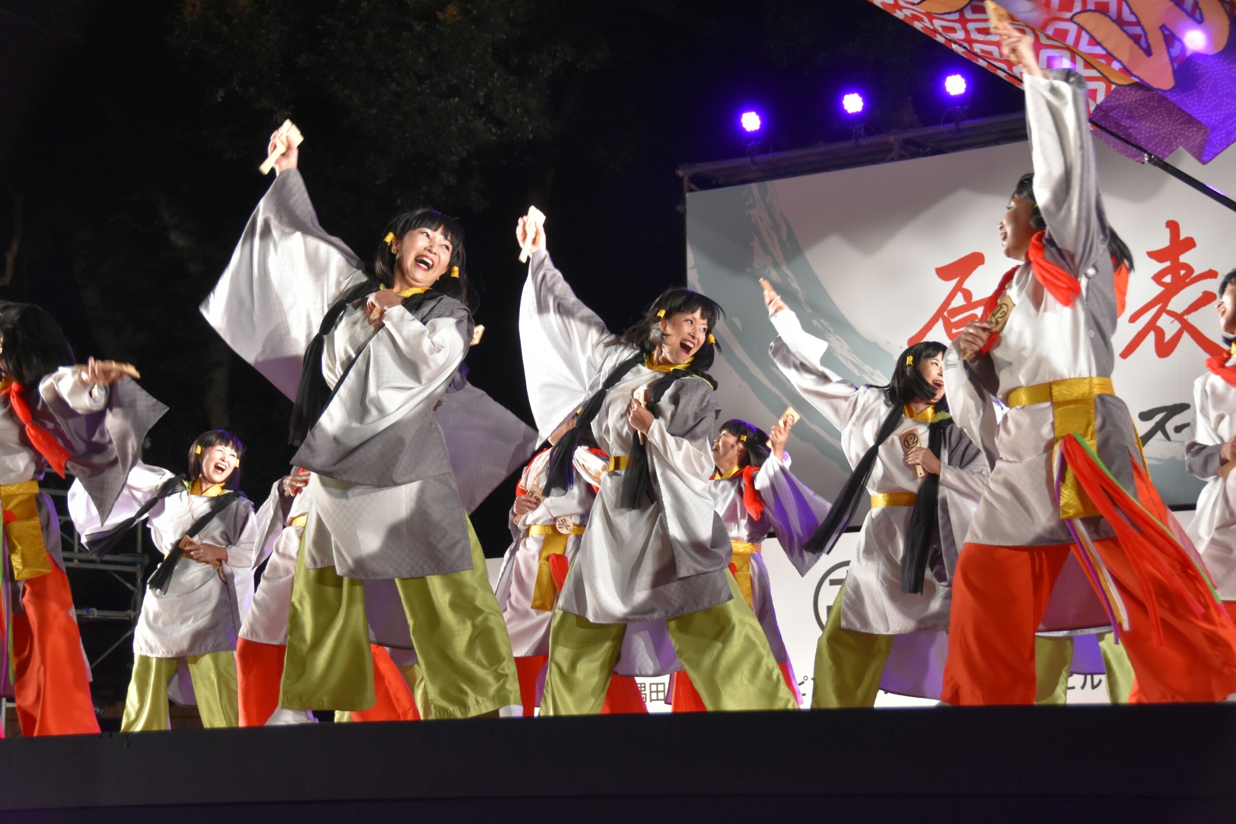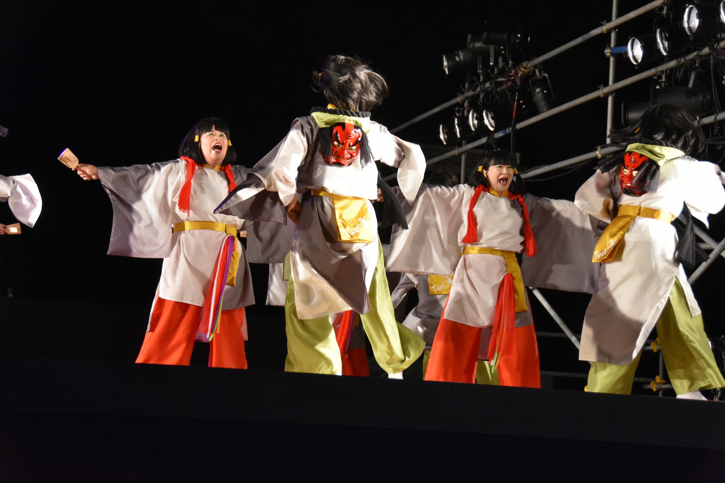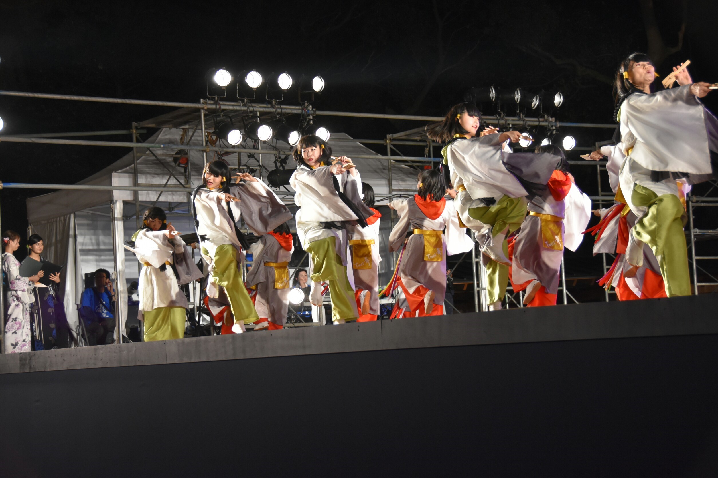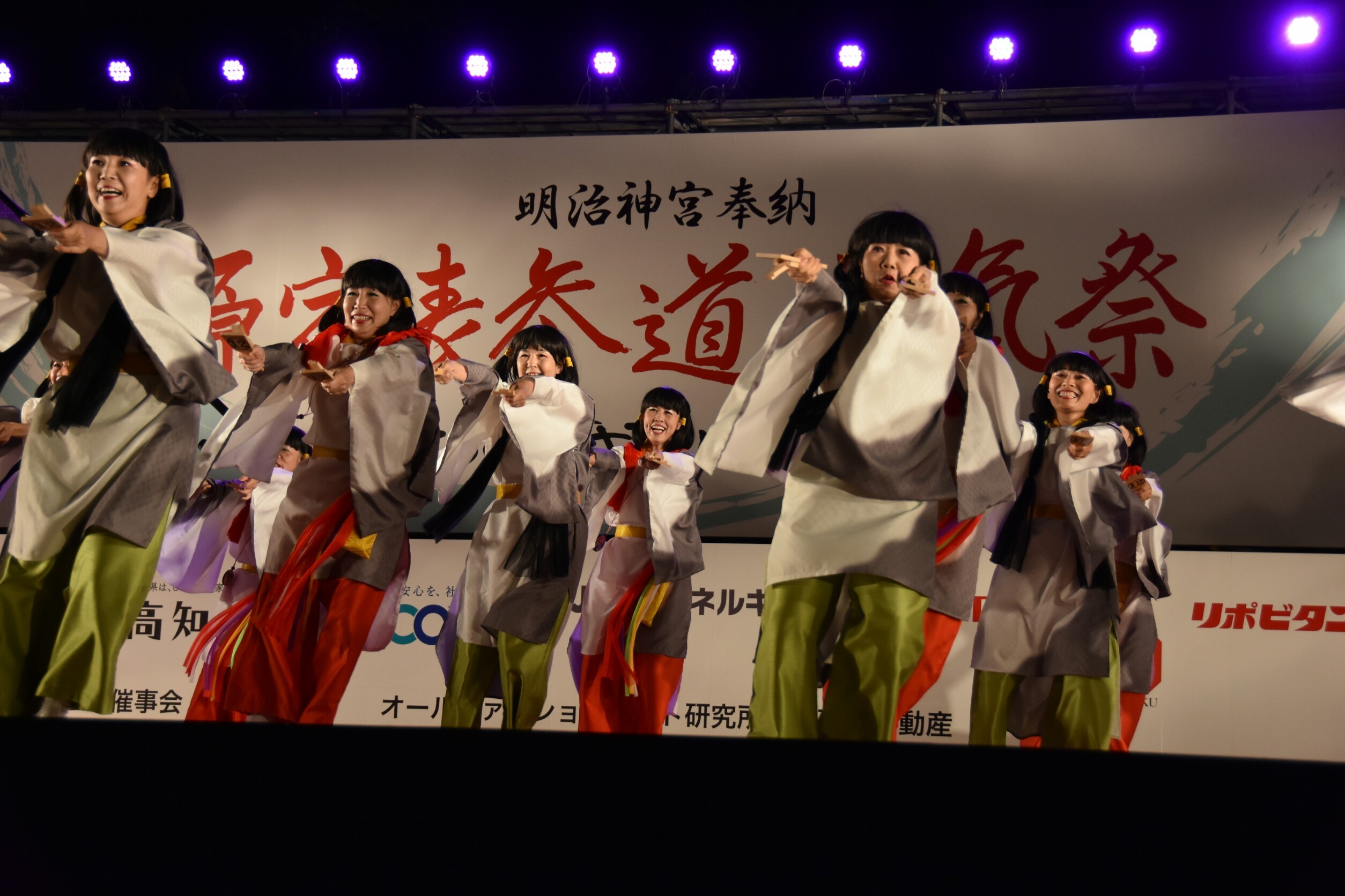 「顔半分クチ!」を合言葉に踊りきることができました。特に夜の原宿口ステージでは最終チームとして、きらびやかなライトを浴びて、たくさんのお客さんに見ていただきながら踊れました。