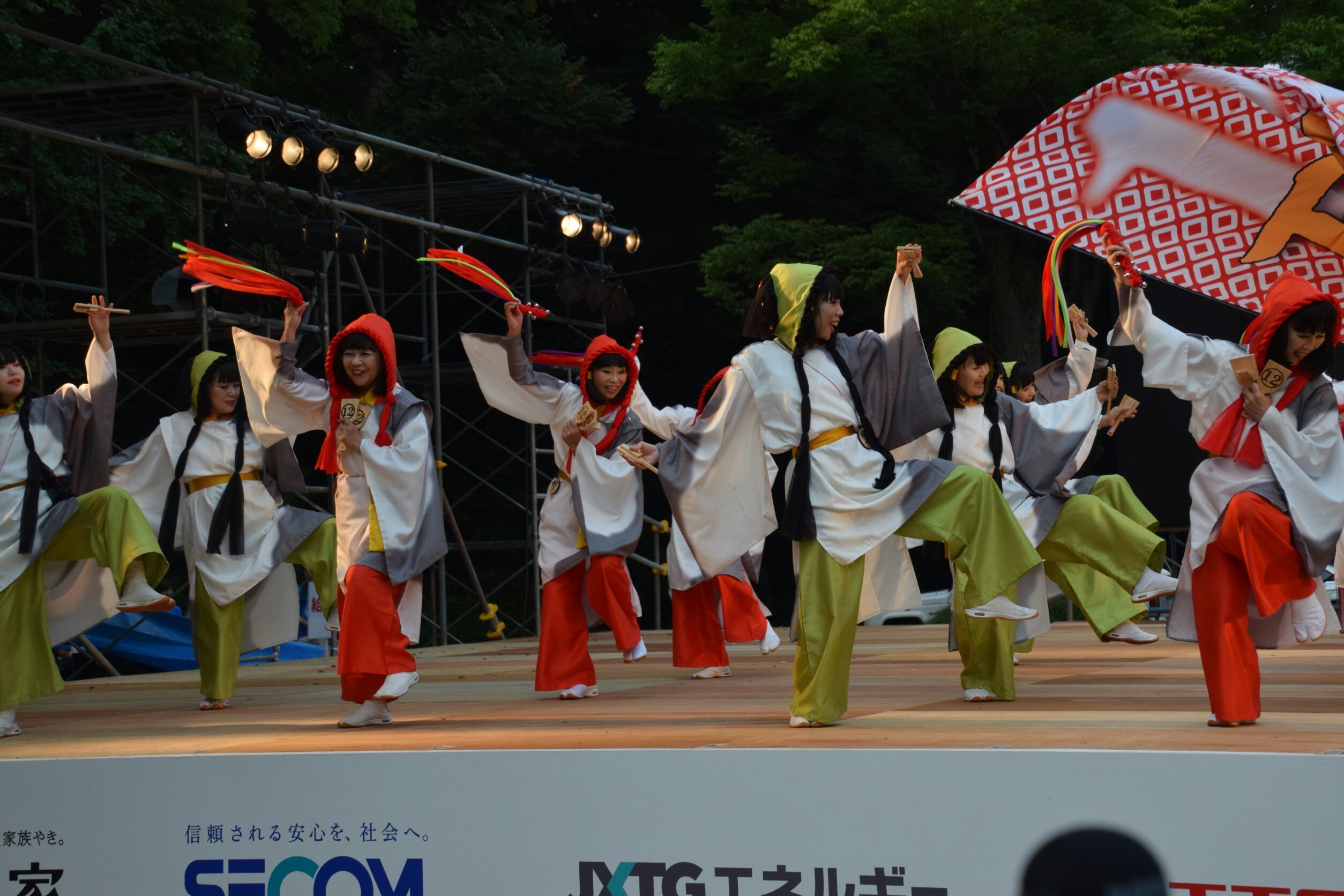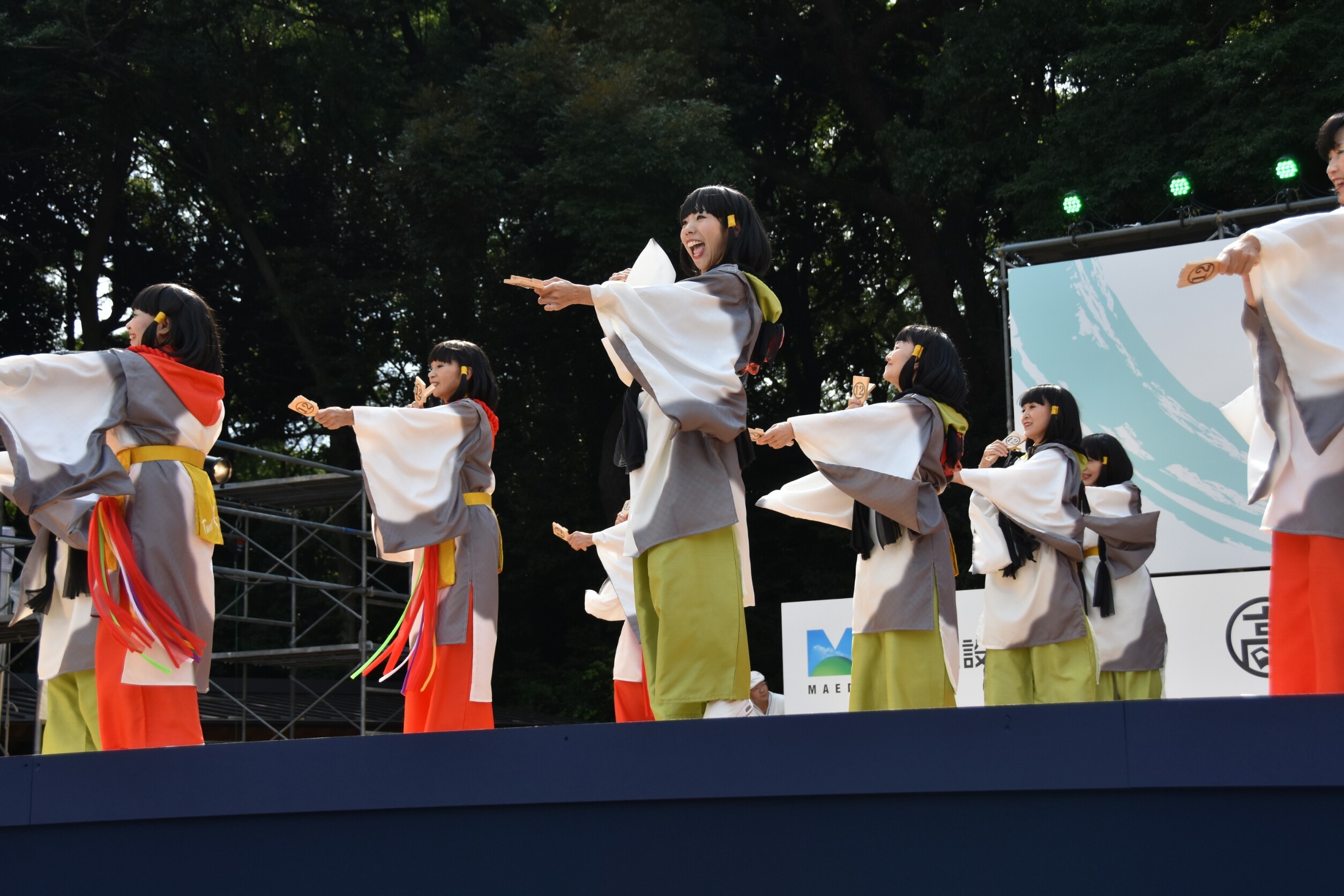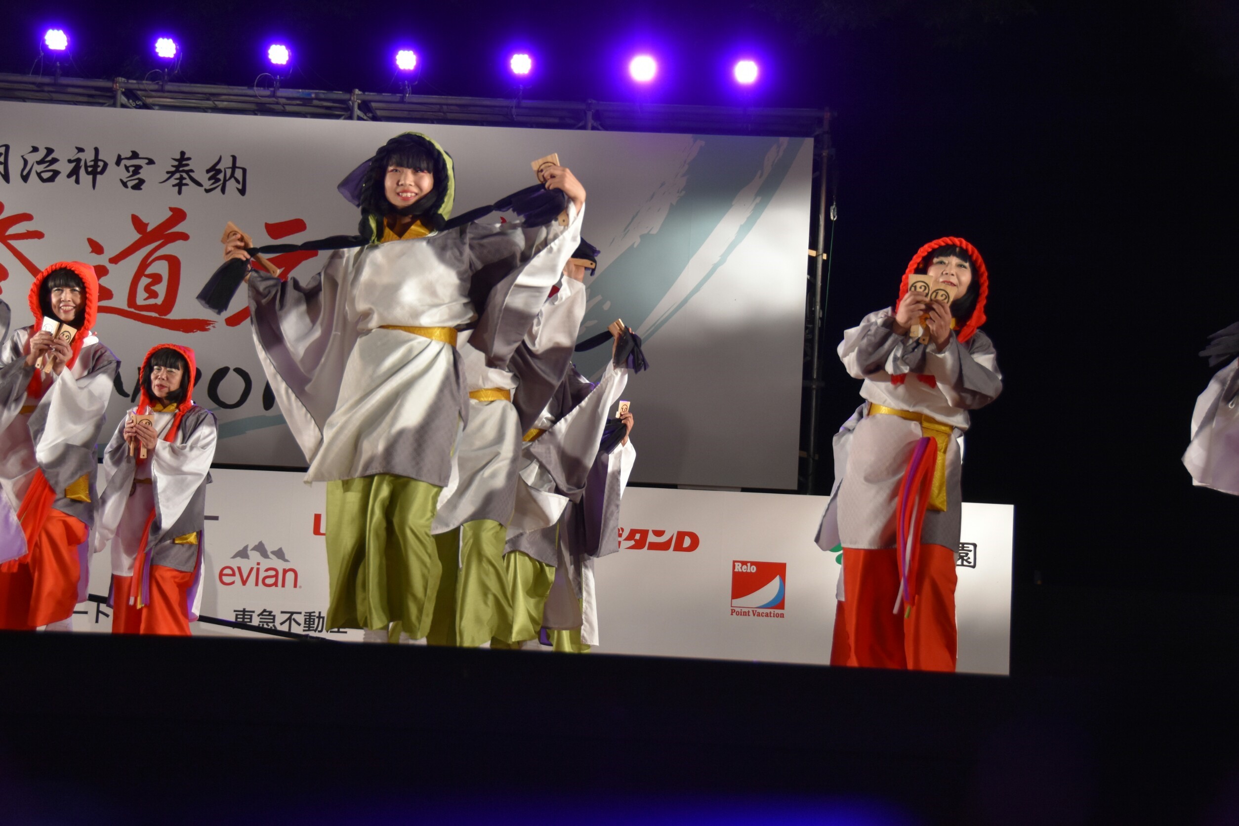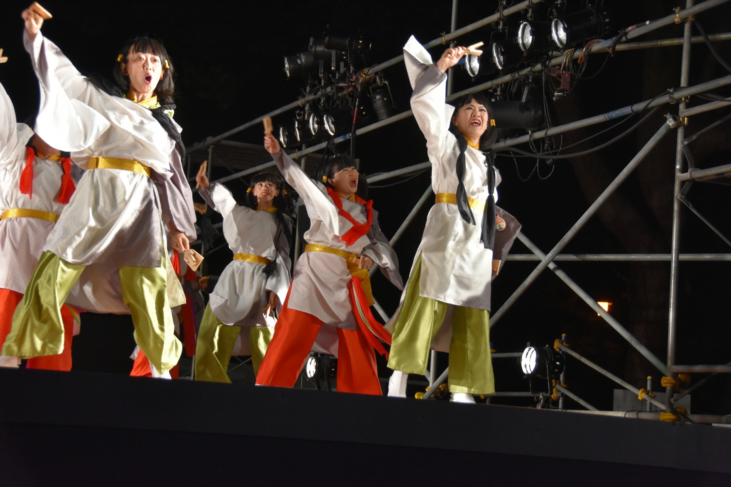 「顔半分クチ!」を合言葉に踊りきることができました。特に夜の原宿口ステージでは最終チームとして、きらびやかなライトを浴びて、たくさんのお客さんに見ていただきながら踊れました。