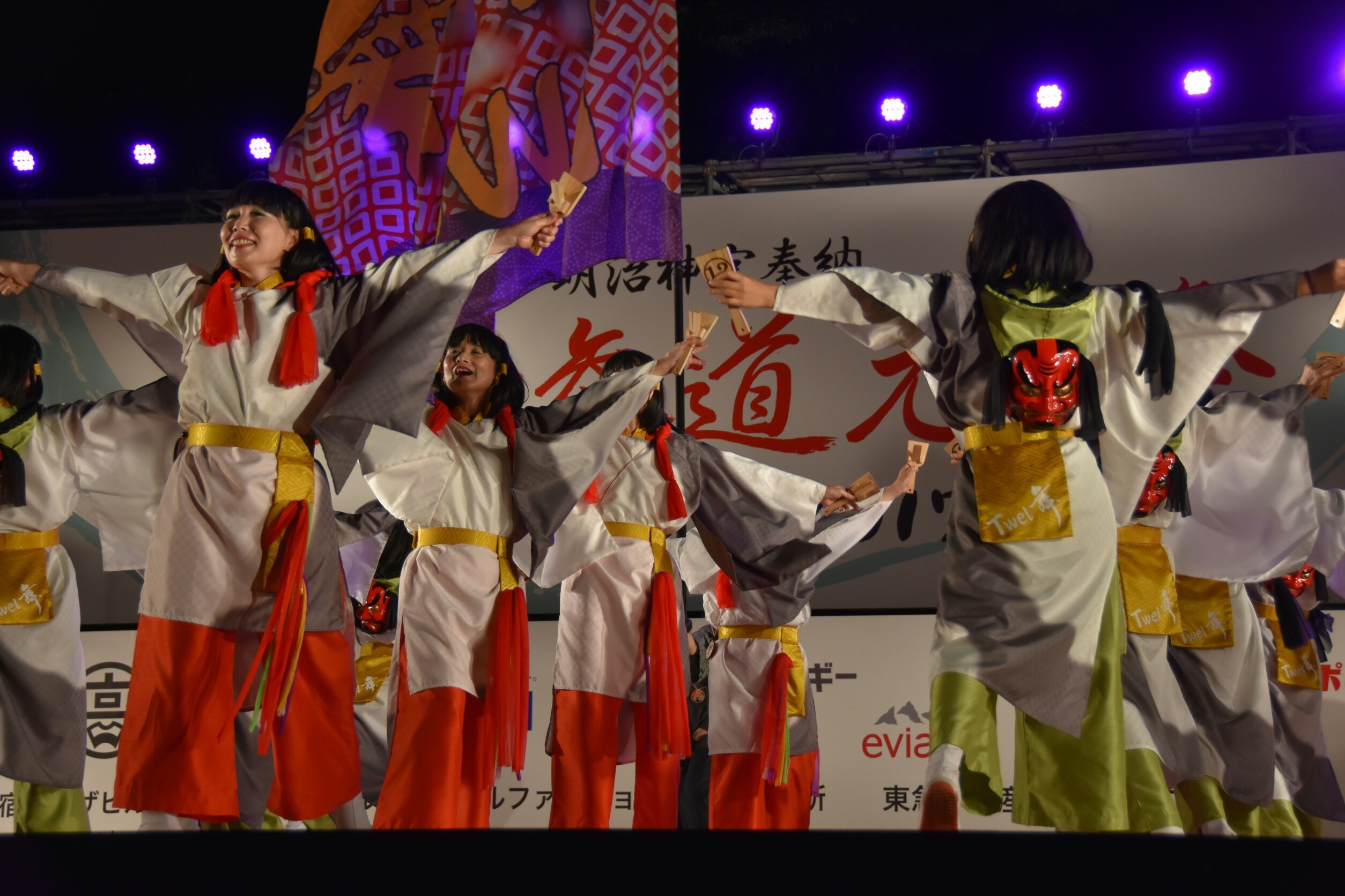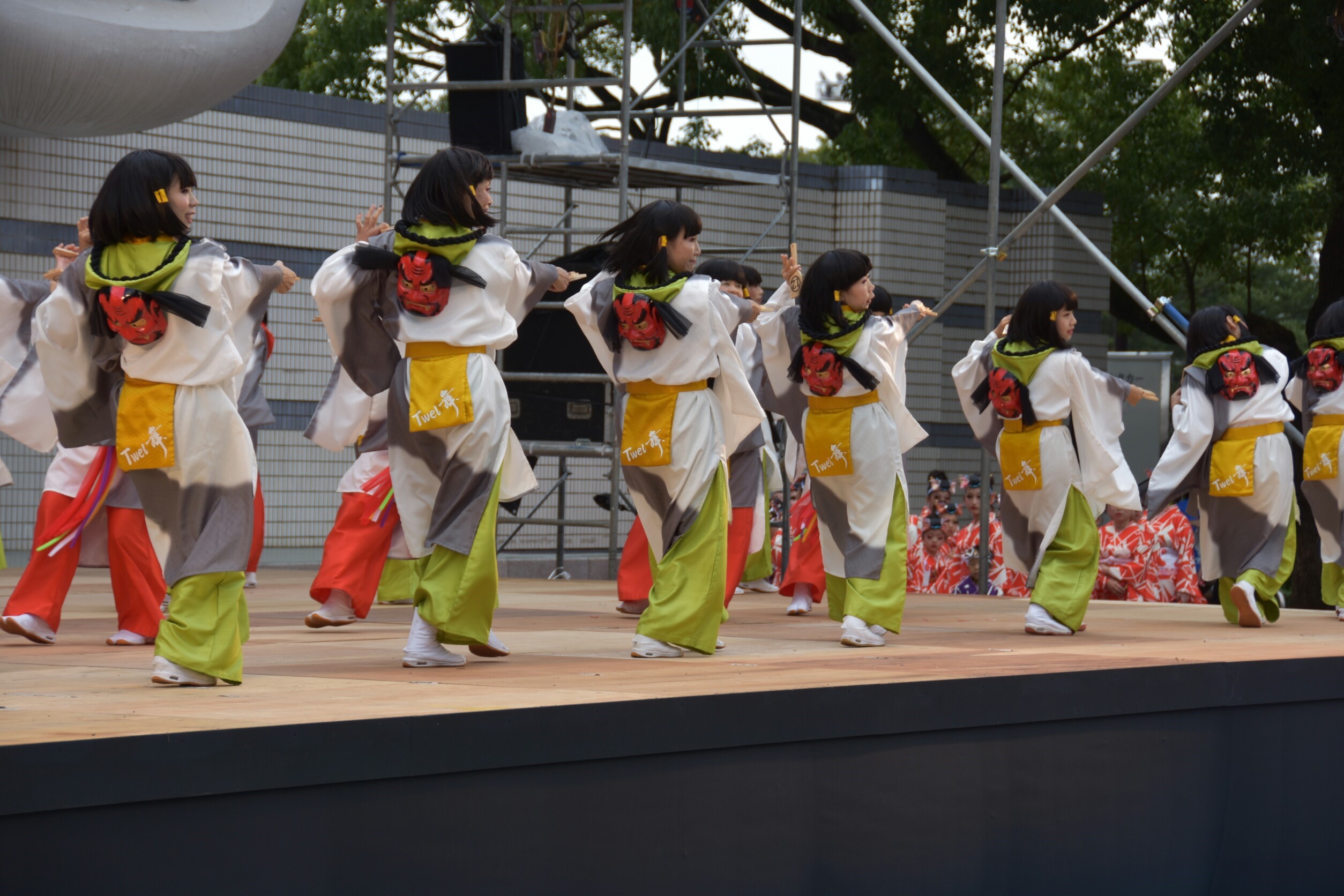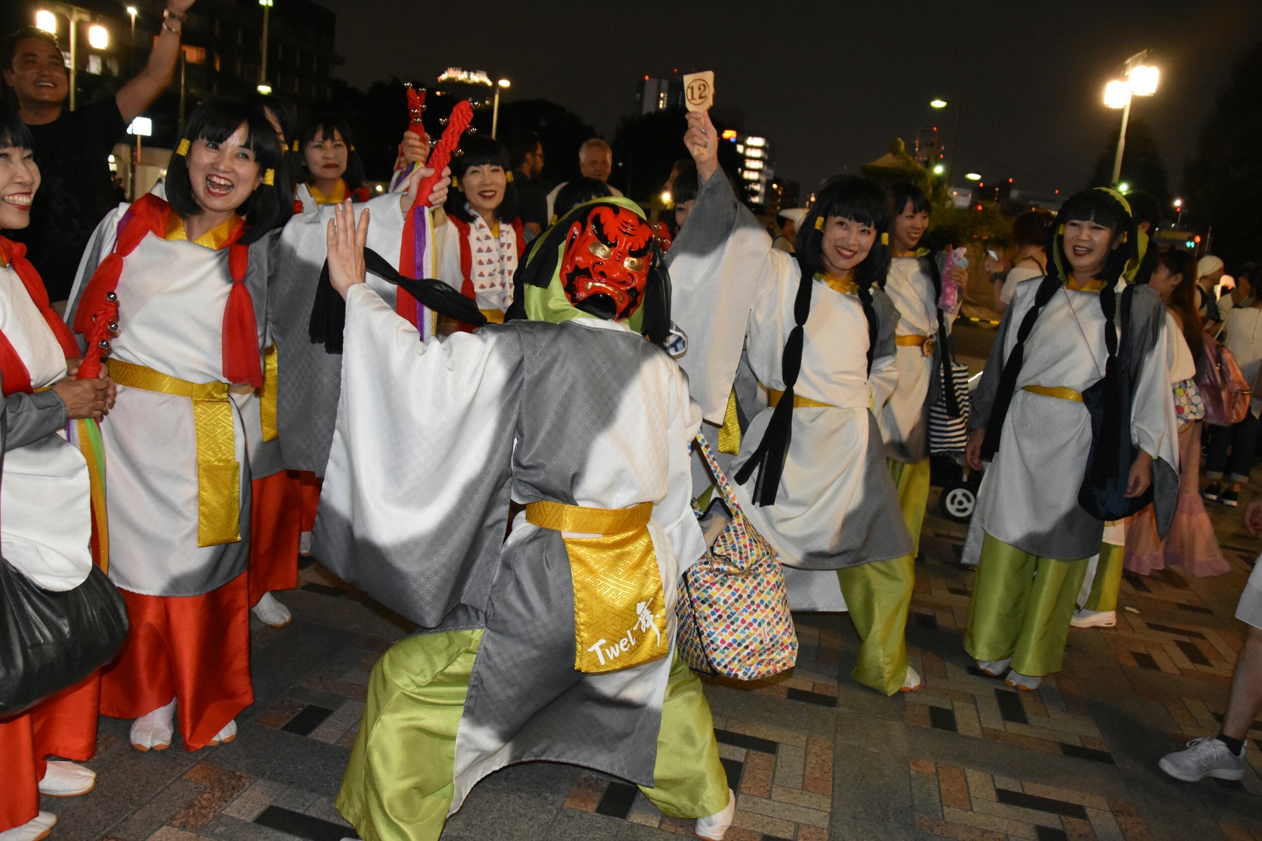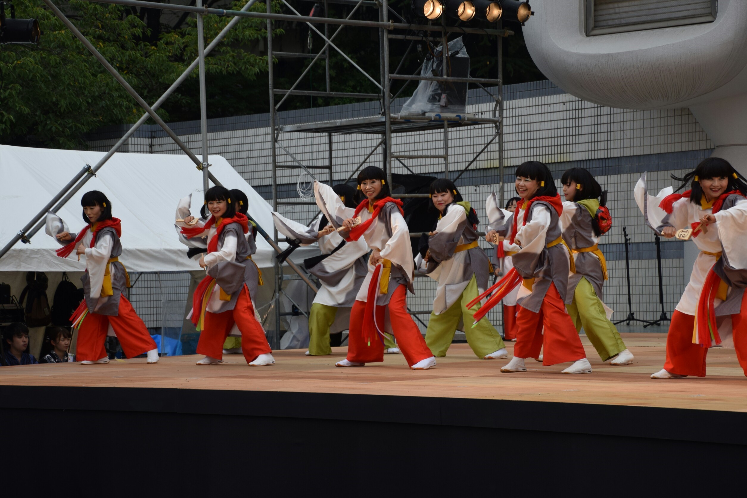 「顔半分クチ!」を合言葉に踊りきることができました。特に夜の原宿口ステージでは最終チームとして、きらびやかなライトを浴びて、たくさんのお客さんに見ていただきながら踊れました。