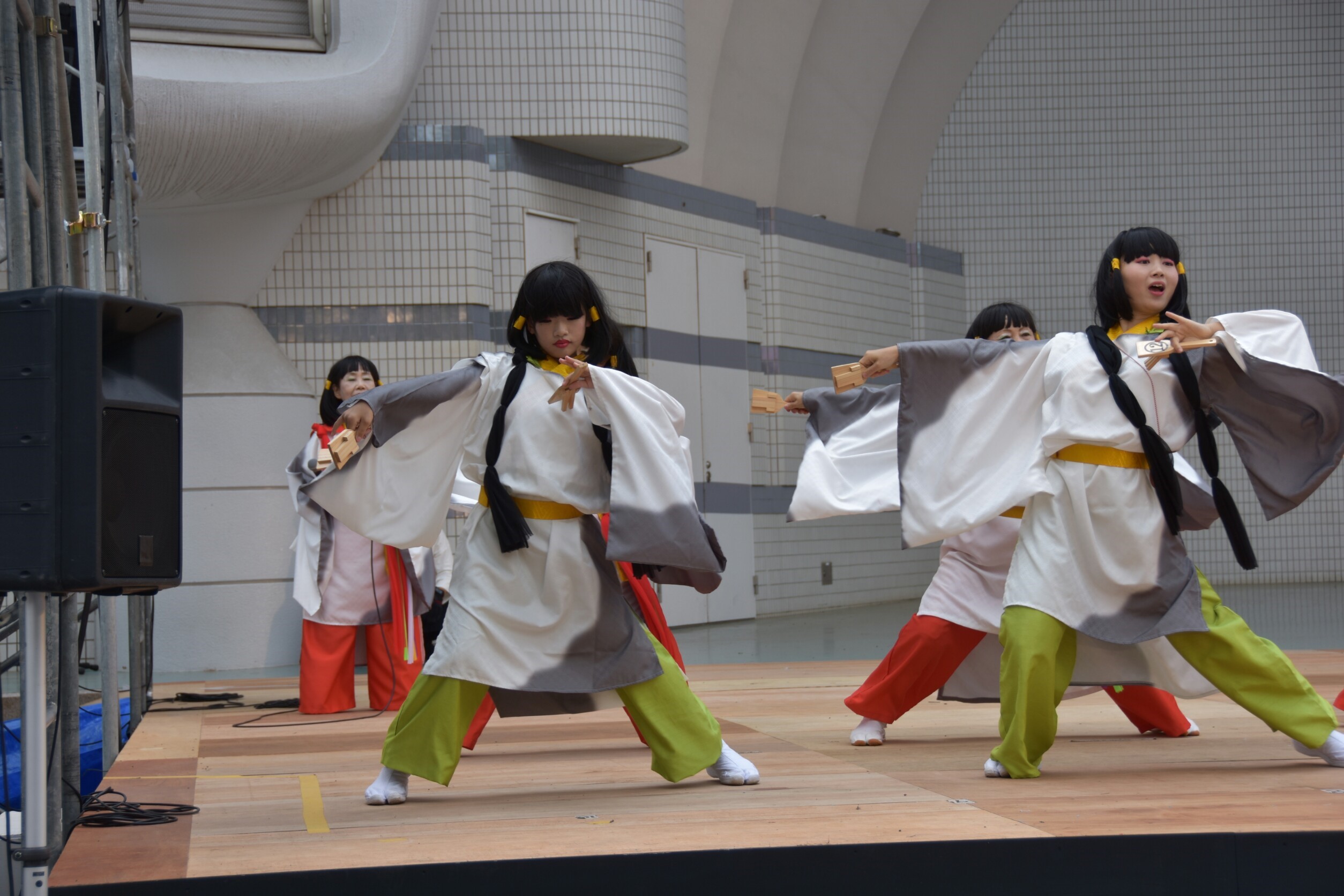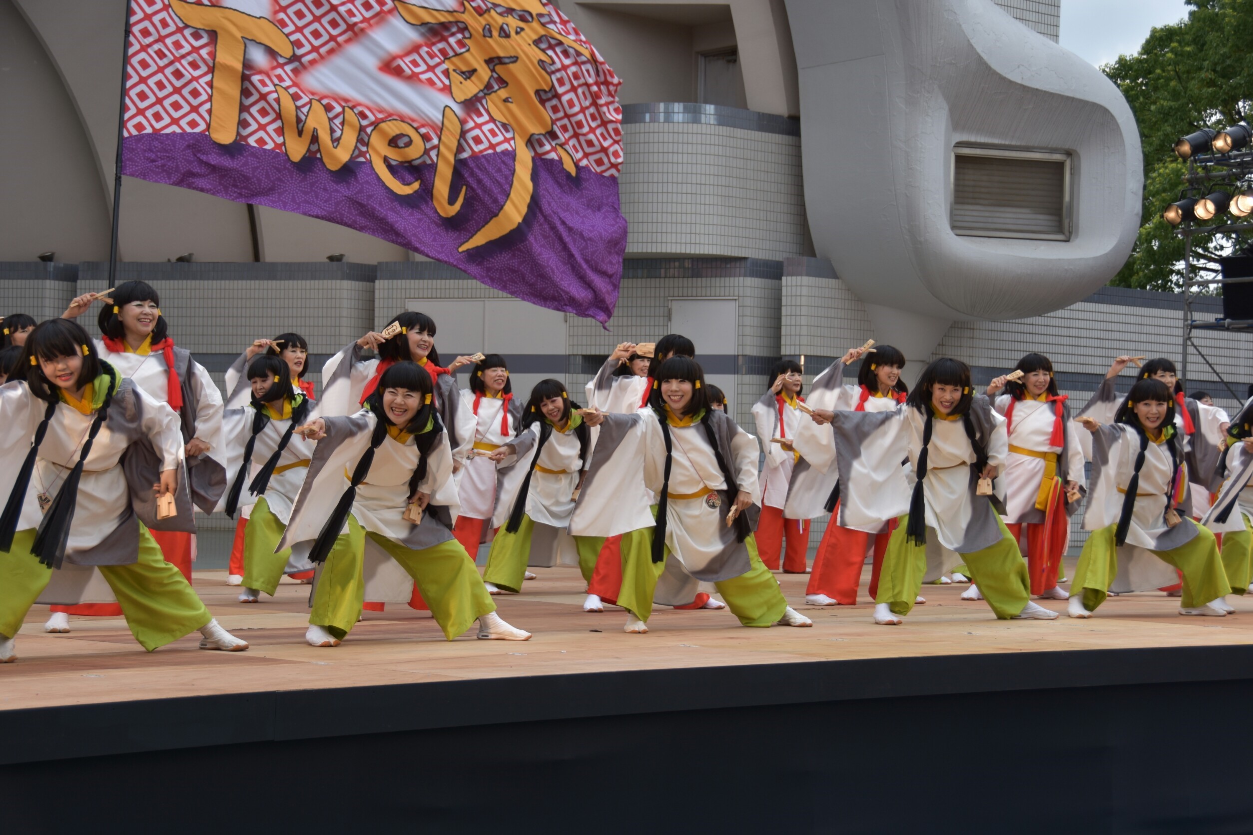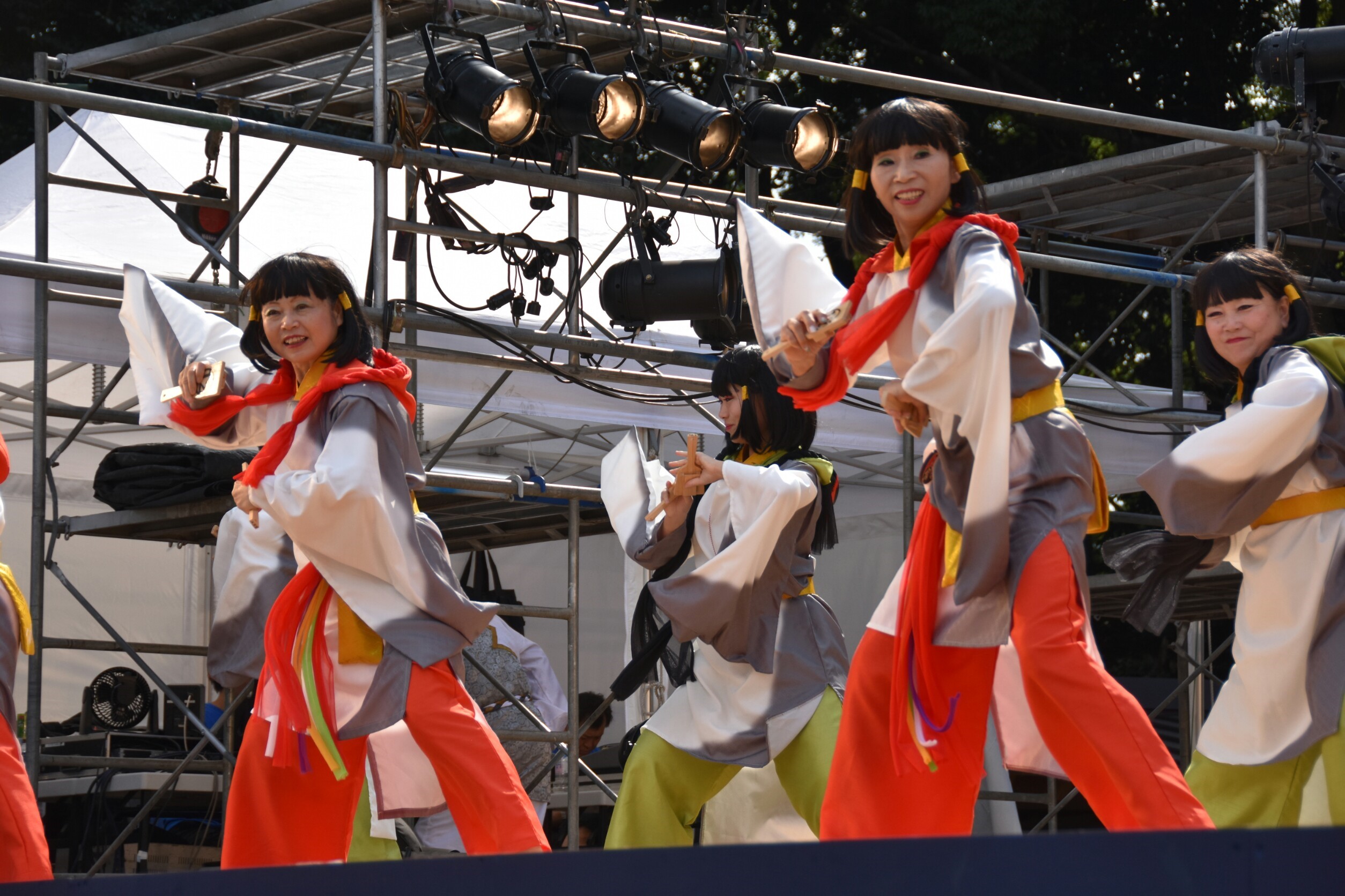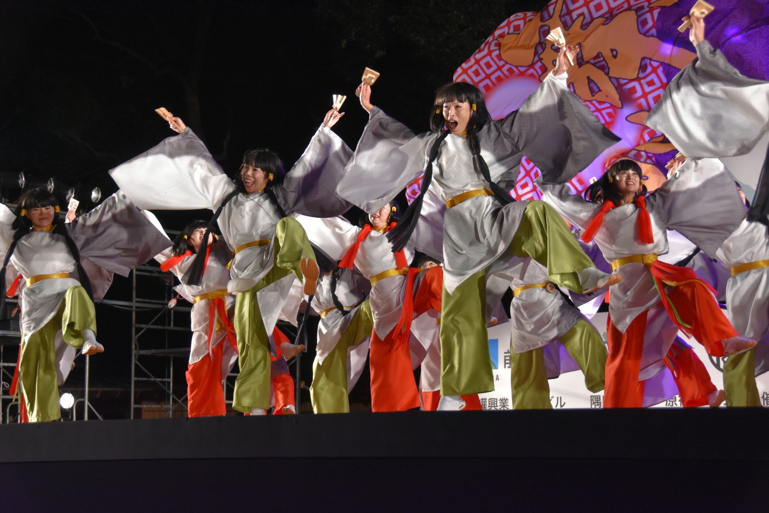 「顔半分クチ!」を合言葉に踊りきることができました。特に夜の原宿口ステージでは最終チームとして、きらびやかなライトを浴びて、たくさんのお客さんに見ていただきながら踊れました。