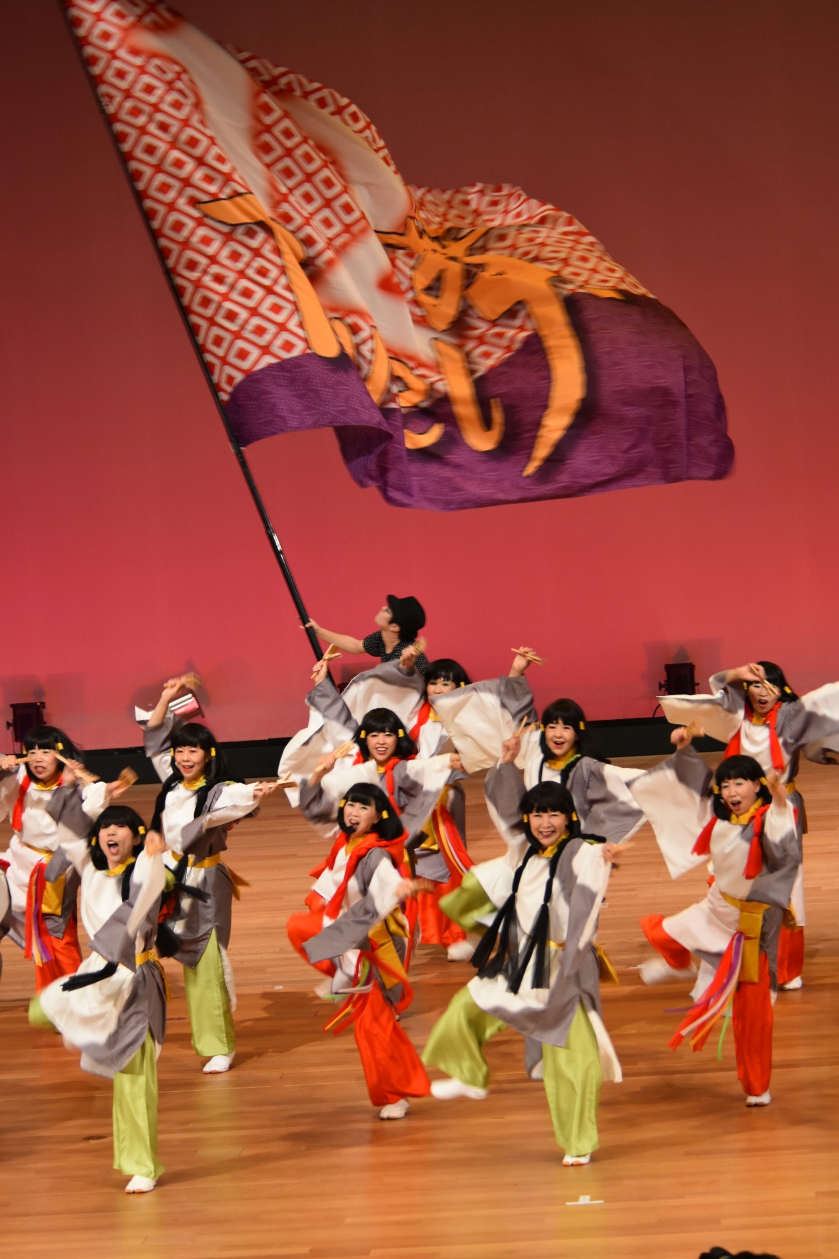 また、大旗だけの演舞もありました。青空の下、各チームの大旗が海風にはためく様子はまさに圧巻!観客だけでなく、チームメンバーからも歓声と拍手が上がりました。