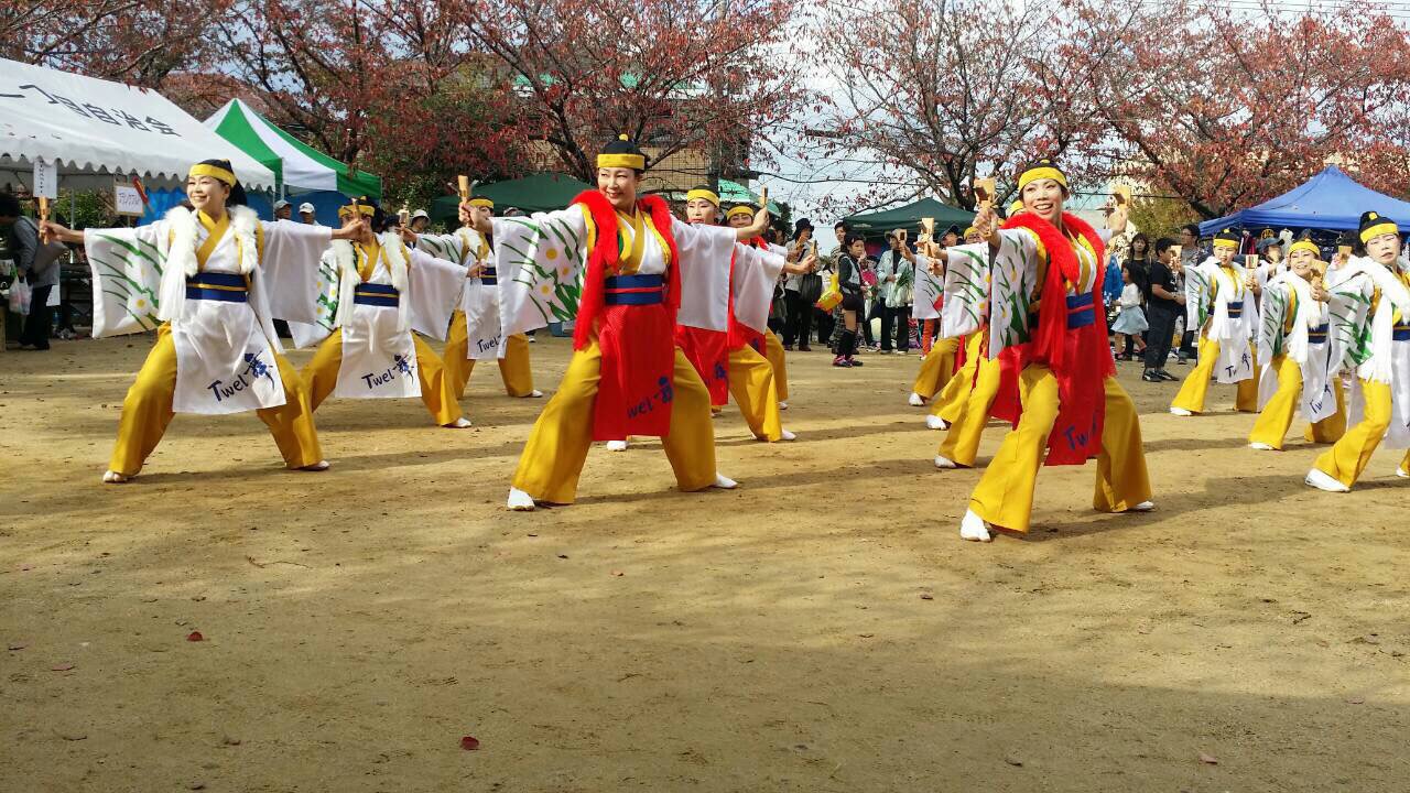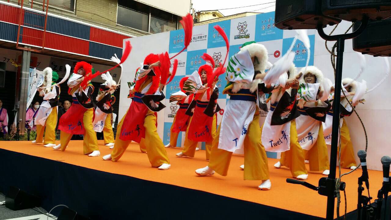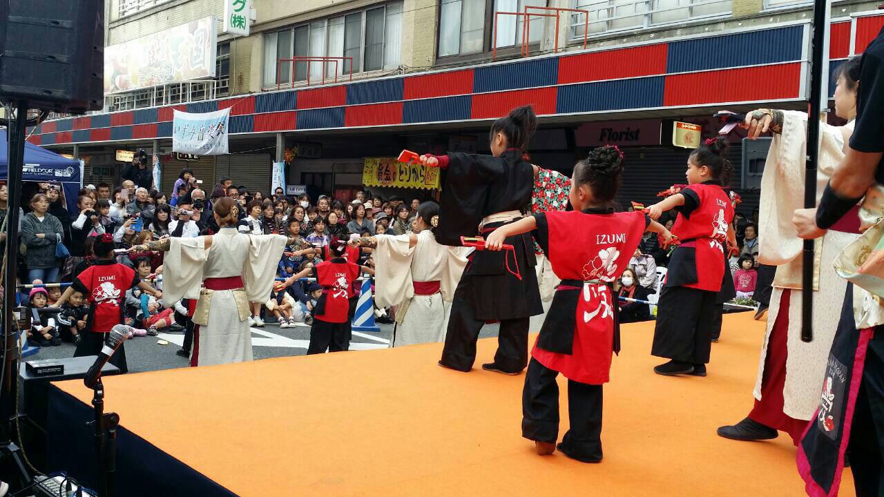 本番直前に降り出した激しい雨!その雨の中で私たちは「和泉国物語」と「ココロ・トリコ・イズミ」を踊らせていただき、主催者の方々やお客様が大いに盛り上げてくださいました。