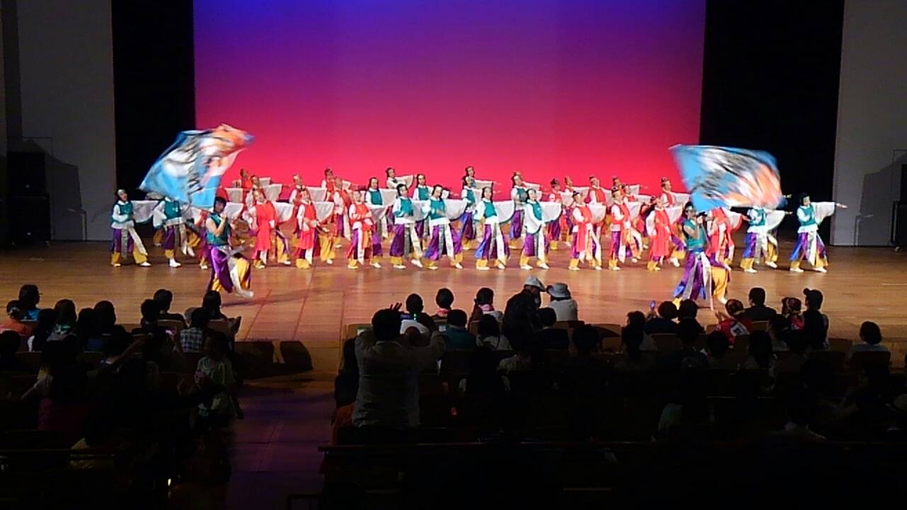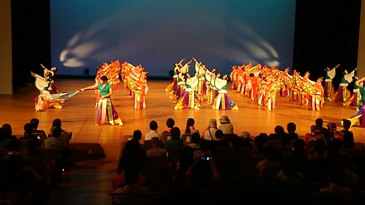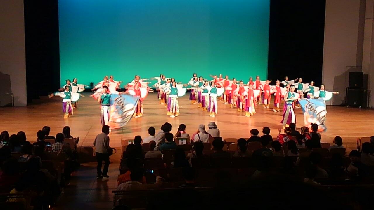 およそ30チームほどが参加で客席はほぼ満席。他のチームさんの意匠を凝らした素晴らしい演舞も見ることが出来ました。この暑い時に冷房のきいた大きなホールで踊ることができるのは、本当にありがたいです!
