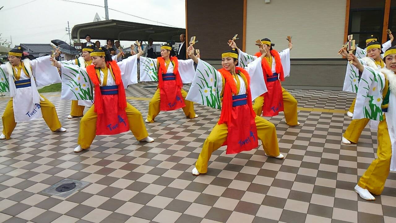 その中に、私たちが踊れる広いステージを用意してくださり、「和泉国物語」・「AKITA ONDO」・「ココロ・トリコ・イズミ」・「もうあしび」の4曲を踊りました。