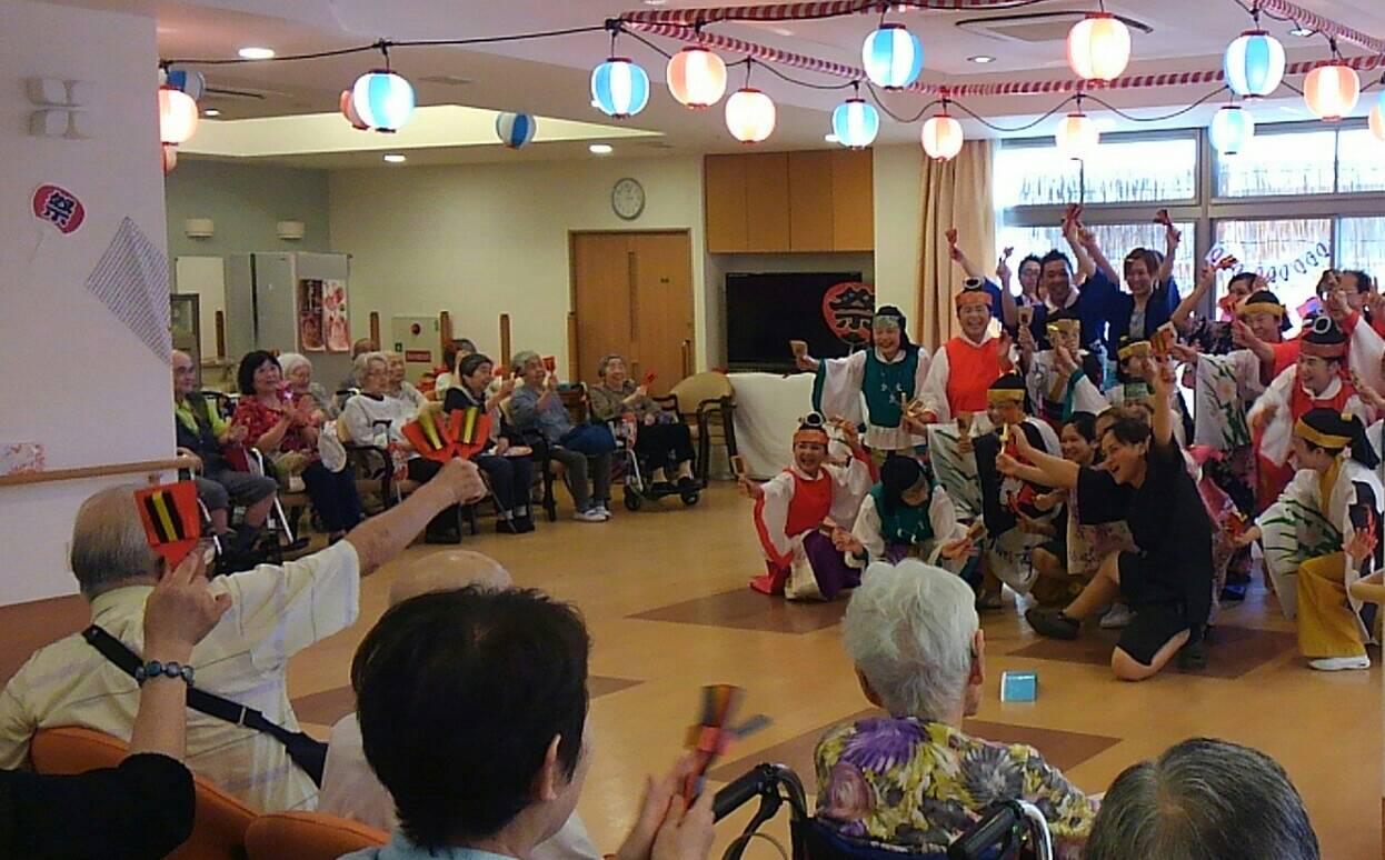 施設内に金魚すくいなど趣向を凝らしたゲームコーナーを作り、浴衣姿の職員さんたちが楽しい夏祭りを演出されていました。施設を利用されている皆さまや、そのご家族の方々も大勢集まり、楽しい夏のひとときを過ごしておられました。