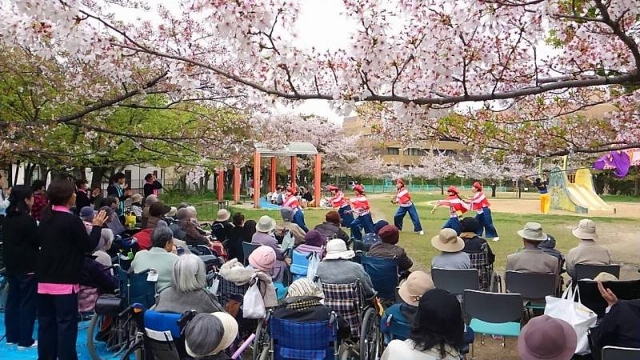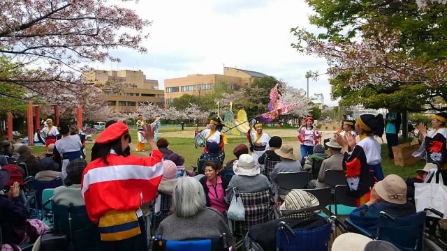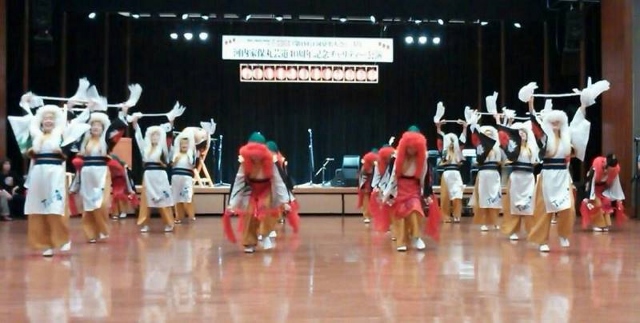 2曲めは「いずみの国生まれのコダイくん ロマンちゃん」観客の皆さんと そして和泉市のイメージキャラクター「コダイくん」「ロマンちゃん」も一緒に、輪になって踊りました。