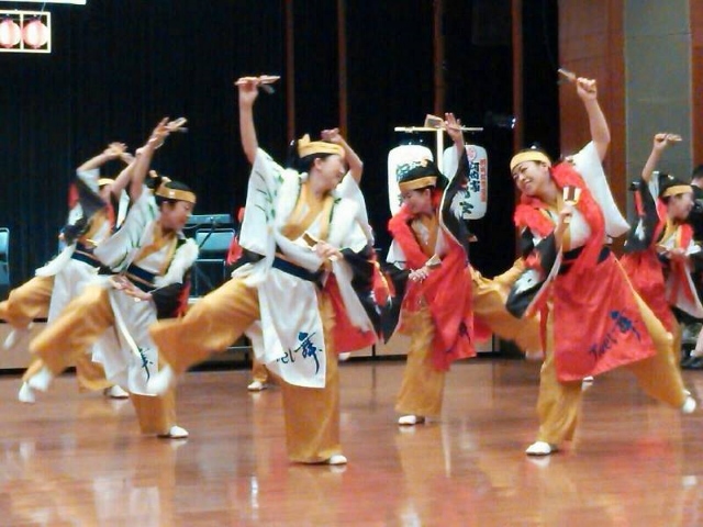 集まっておられた盆踊りファンのお客様に、よさこいの楽しさも知っていただけたらと、はりきって踊らせていただきました。