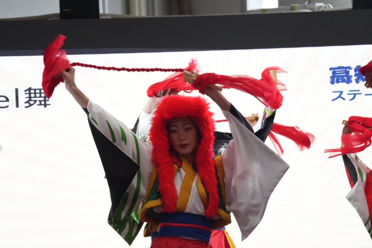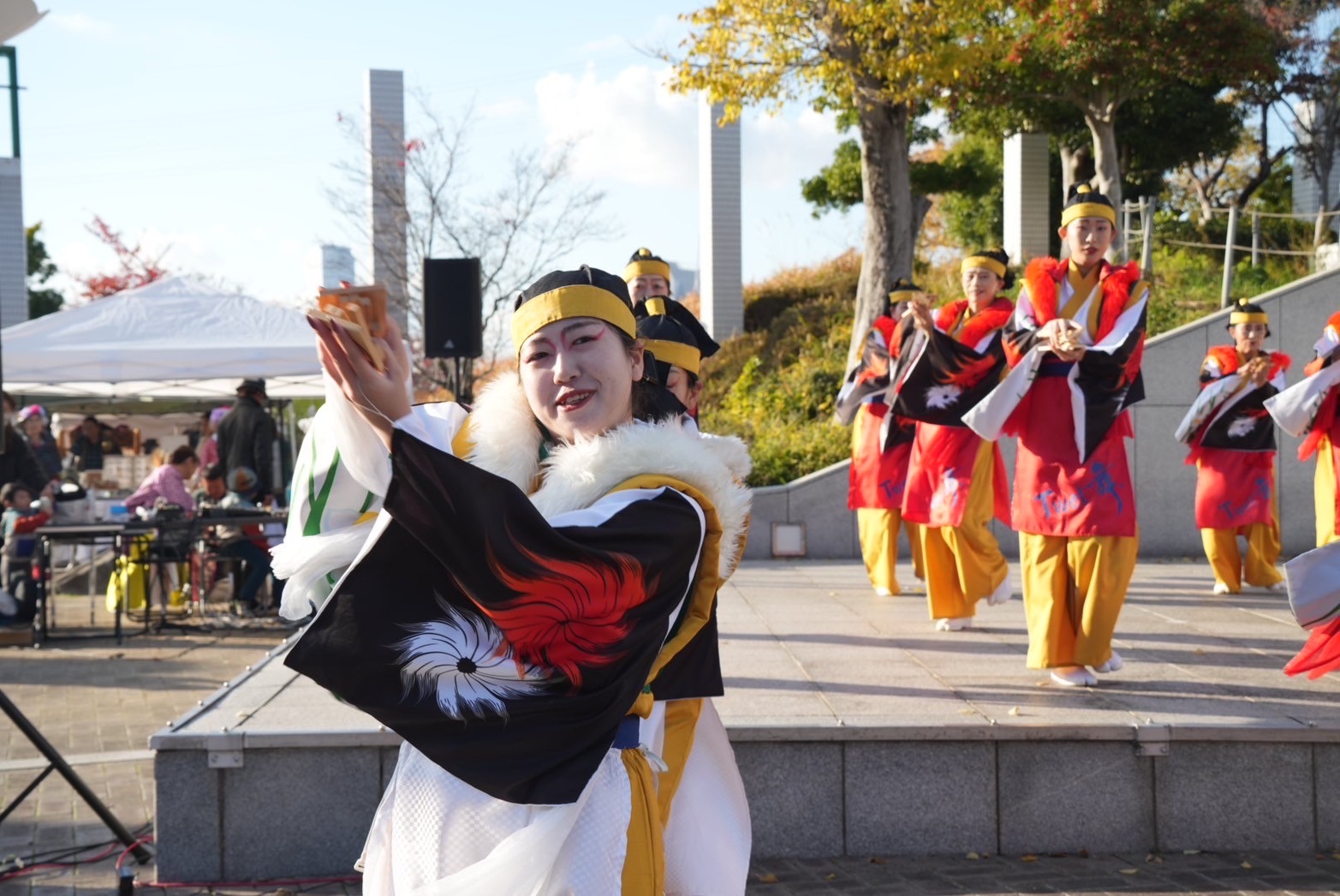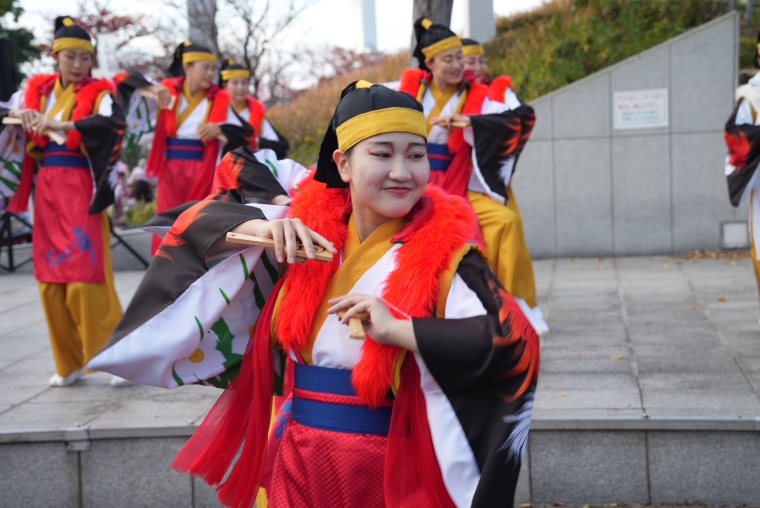 風が強い日でしたが、会場が屋内なので衣装が風に煽られる心配もなく、また座席で他のチームの演舞をゆっくり観ることができました。