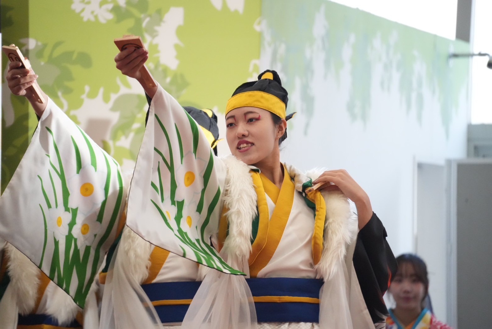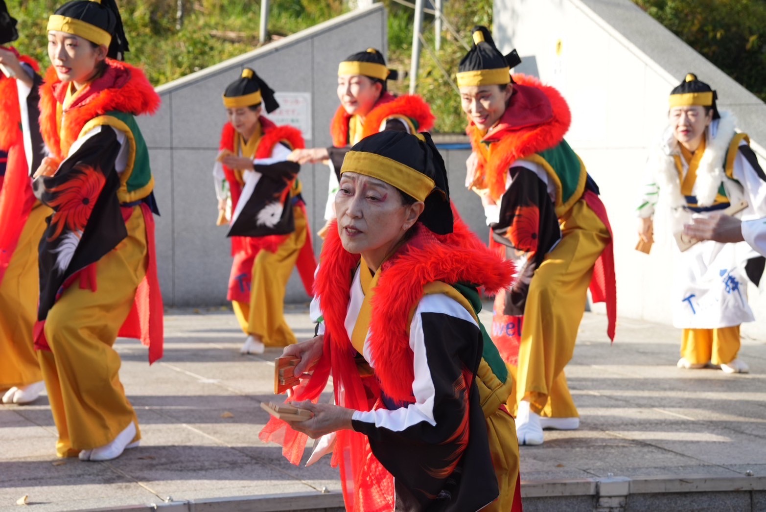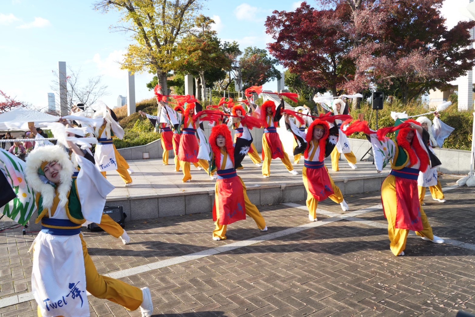 風が強い日でしたが、会場が屋内なので衣装が風に煽られる心配もなく、また座席で他のチームの演舞をゆっくり観ることができました。
