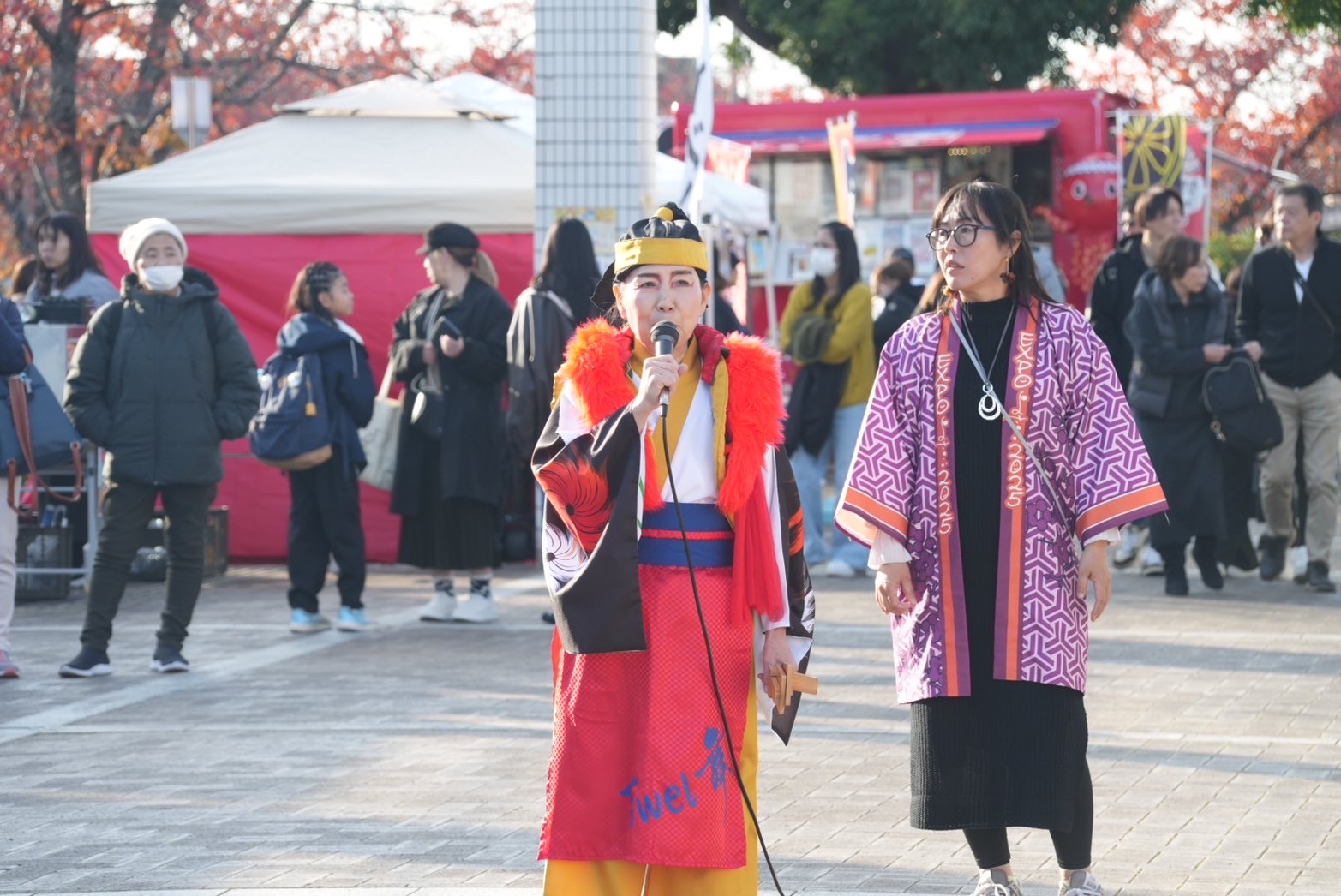 手作り市での買い物や、キッチンカーの食事を楽しんでいるお客さんたちの中で、私たちは「和泉国物語」を披露してきました。